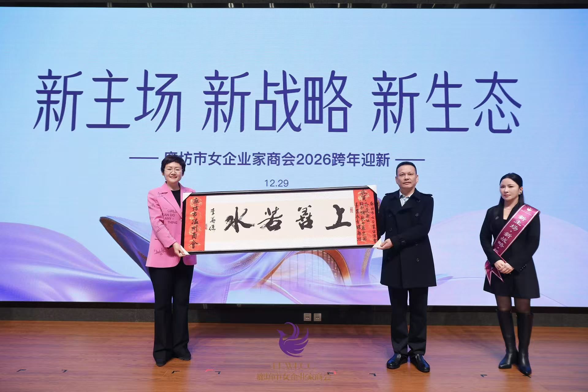 2025年12月29日,廊坊市女企業(yè)家商會在新落成的會址成功舉辦“新主場·新戰(zhàn)略·新生態(tài)”跨年迎新會。廊坊市政協(xié)副主席、市工商聯(lián)主席孟憲明,市婦聯(lián)主席劉玫、市工商聯(lián)常務(wù)副主席魏建、市民政局副局長劉靜等領(lǐng)導(dǎo)與近300名女企業(yè)家及各界嘉賓齊聚一堂,共同回顧奮斗歷程、擘畫發(fā)展新篇。