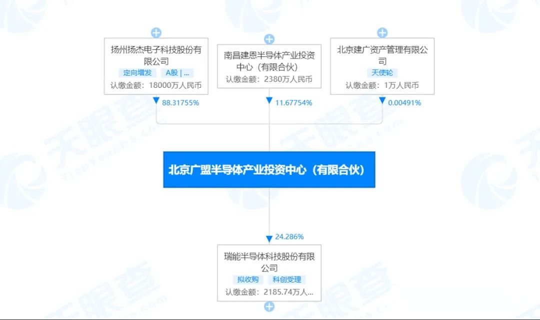 在最新的股權(quán)結(jié)構(gòu)方面,目前瑞能半導(dǎo)仍為中資100%控股。其前三大股東南昌建恩、北京廣盟、天津瑞芯分別持股約24.29%、24.29%、22.86%,均為私募基金;三者的執(zhí)行事務(wù)合伙人均為建廣資產(chǎn)或其關(guān)聯(lián)方,使建廣資產(chǎn)得以行使約71%表決權(quán)。