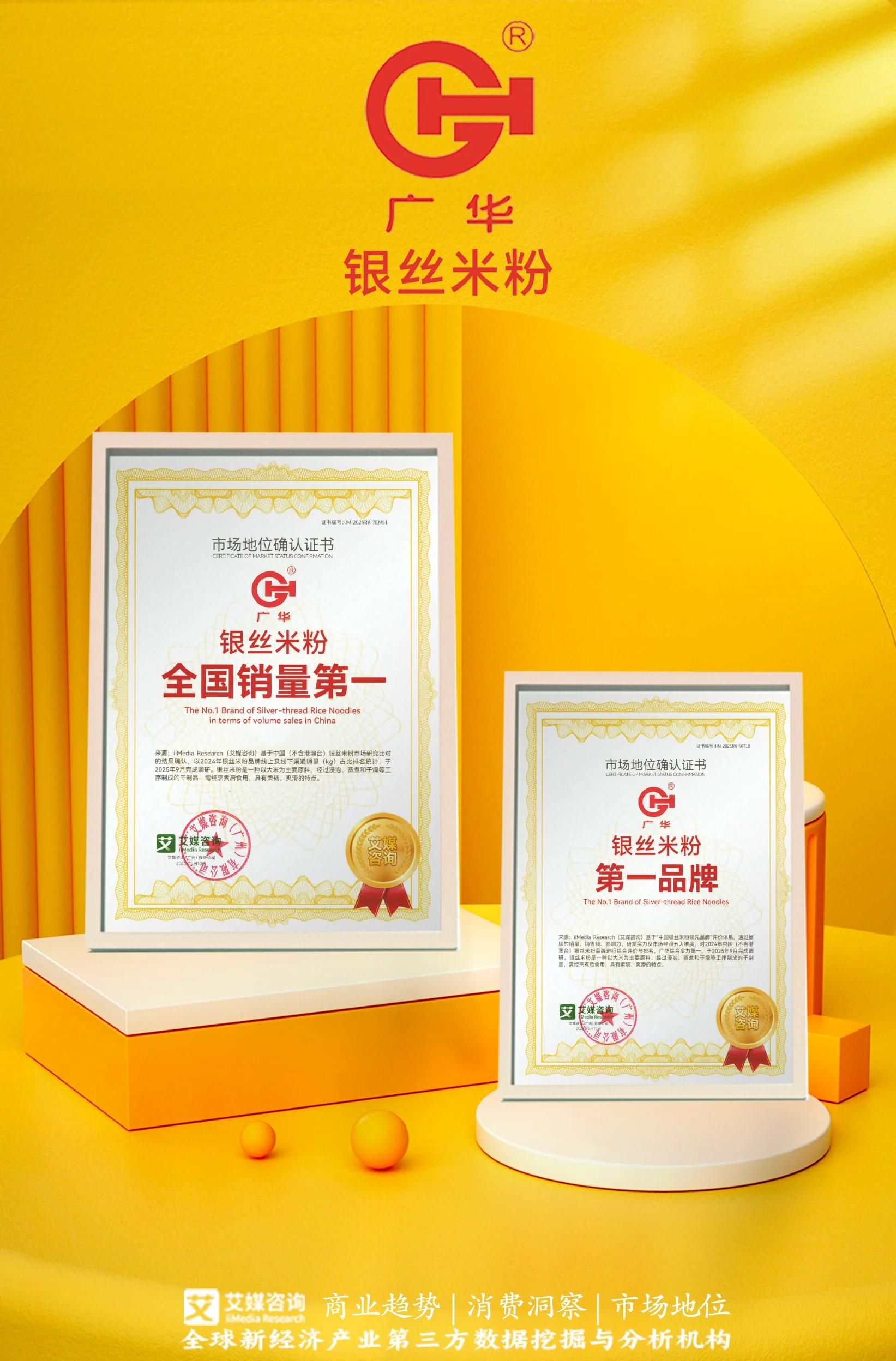 近期,廣華食品獲全球領(lǐng)先的新經(jīng)濟(jì)產(chǎn)業(yè)第三方數(shù)據(jù)挖掘和分析機(jī)構(gòu)iiMedia Research(艾媒咨詢)授予的“銀絲米粉全國(guó)銷量第一”“銀絲米粉第一品牌”雙項(xiàng)市場(chǎng)地位確認(rèn)。