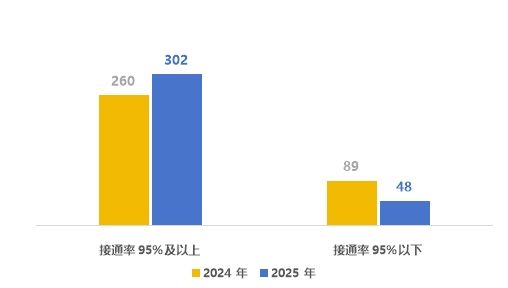 圖 2024-2025不同平均接通率城市數(shù)量分布情況