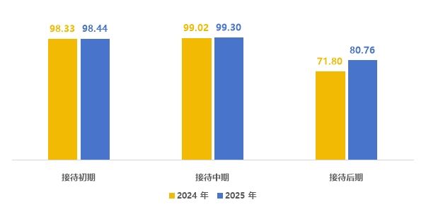 2025年接待禮儀得分92.83分,同比增長3.47%。接待禮儀后期指標得分漲幅較大,其中,“再次詢問需求”指標得分同比增長36.26%,較多城市優(yōu)化了通話后期的話術(shù),提高了通話體驗。