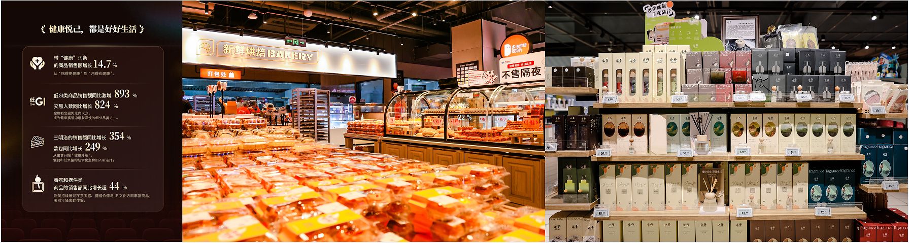 此外,悅己消費(fèi)也不止于吃,香氛和家居擺件類的銷售額同比增長超44%,氛圍感成為消費(fèi)決策的重要考量。呼應(yīng)這一消費(fèi)趨勢,物美通過線上線下全渠道豐富香氛和潮流IP制品等商品供給,滿足年輕客群對情緒價值和IP文化的追求,讓顧客在物美的日常消費(fèi)成為享受生活的重要載體。