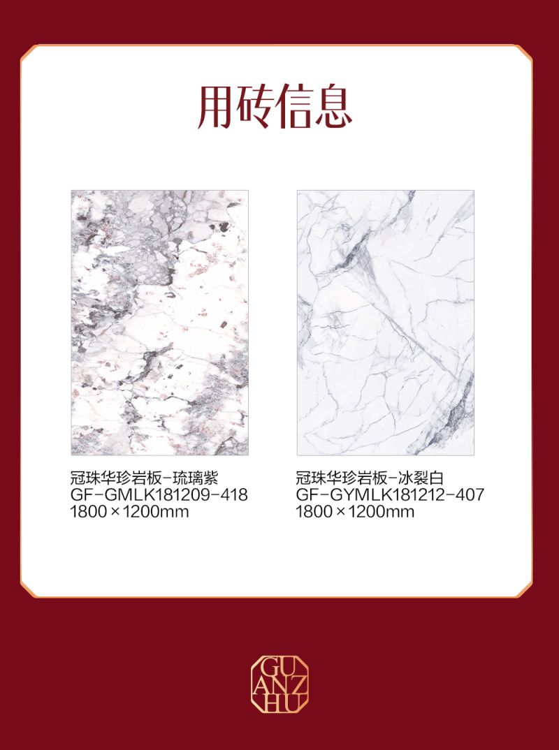 冠珠華珍巖板冰裂白,就是郭培老師給工匠們選擇的“靈感伙伴”。它自然開片的紋理疏密講究,如冰層開裂,又如繡線于面料上自然散開,大面積應(yīng)用震撼靈動(dòng),被參觀的媒體評(píng)價(jià)為:是見過的至美工作室!