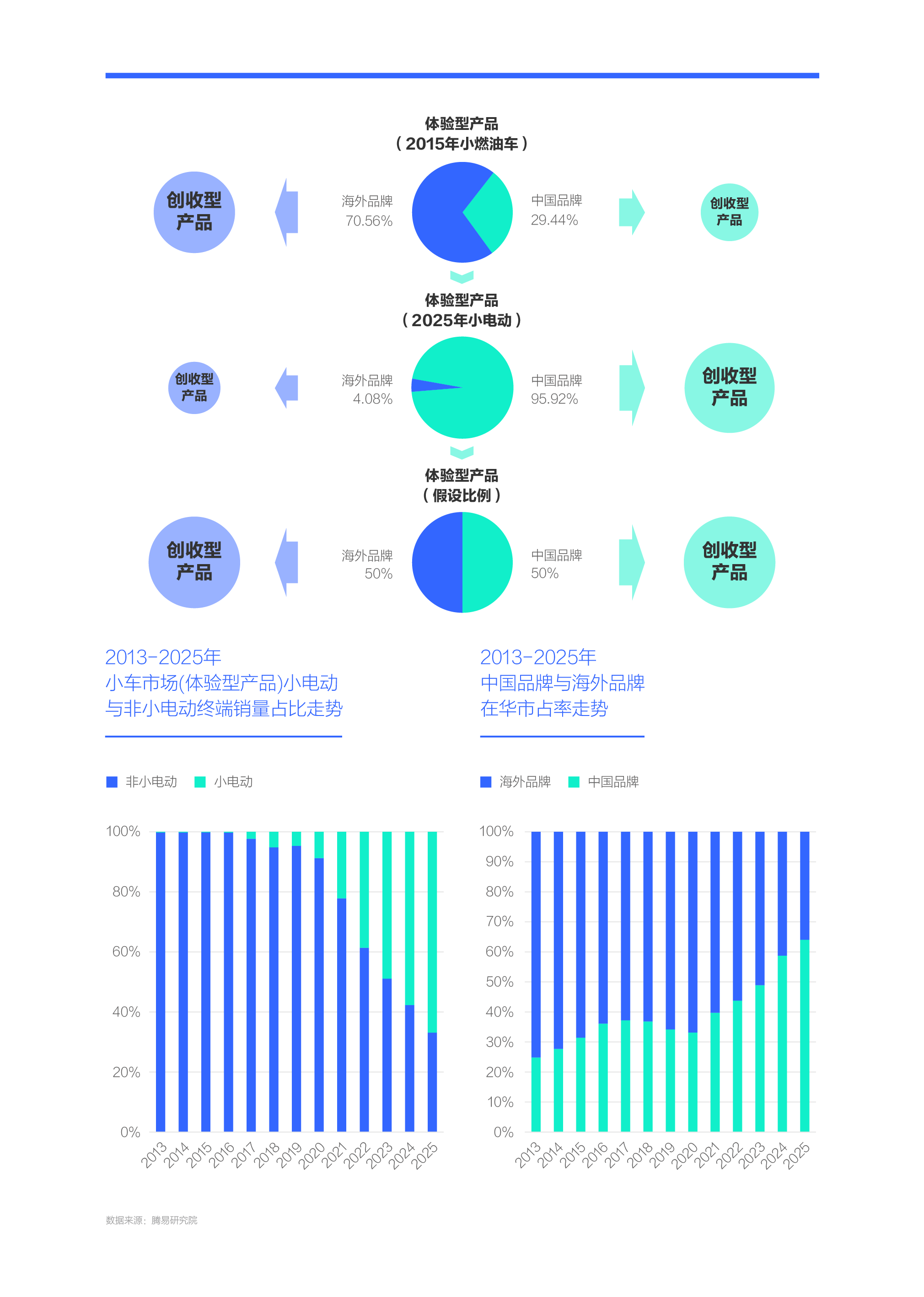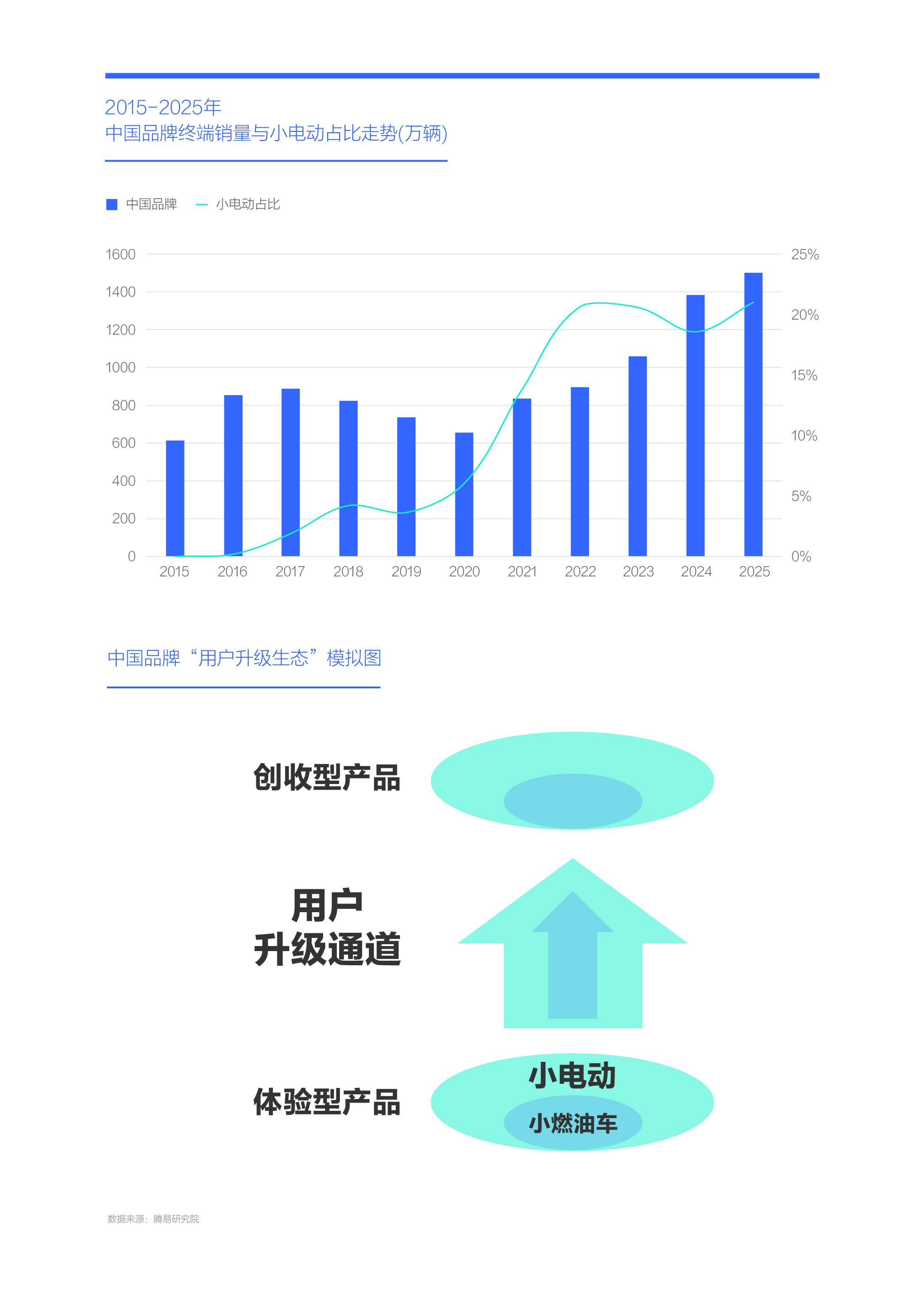 2025年,在體驗(yàn)型產(chǎn)品為主的小車(chē)市場(chǎng),中國(guó)品牌絕對(duì)主導(dǎo)的小電動(dòng)的市占率逼近70%,為中國(guó)品牌重構(gòu)“用戶升級(jí)生態(tài)”提供了肥沃土壤,也為中國(guó)品牌的高端化創(chuàng)造了絕佳機(jī)會(huì);