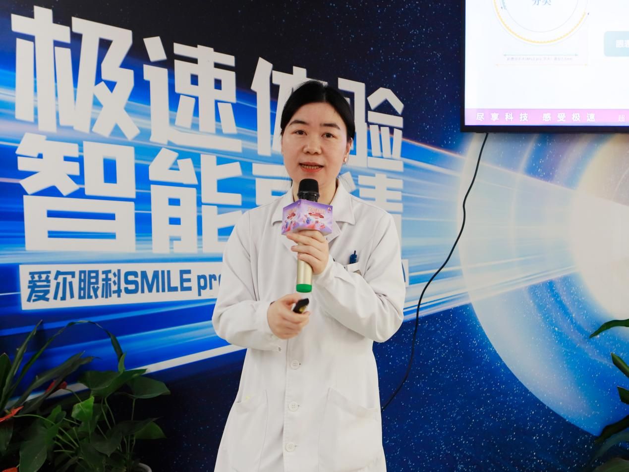 ▲周欣護(hù)士長(zhǎng)在新一代機(jī)器人全飛秒 VISUMAX 800及新微創(chuàng)手術(shù)SMILE pro金陵首發(fā)現(xiàn)場(chǎng)手術(shù)直播后進(jìn)行體驗(yàn)分享