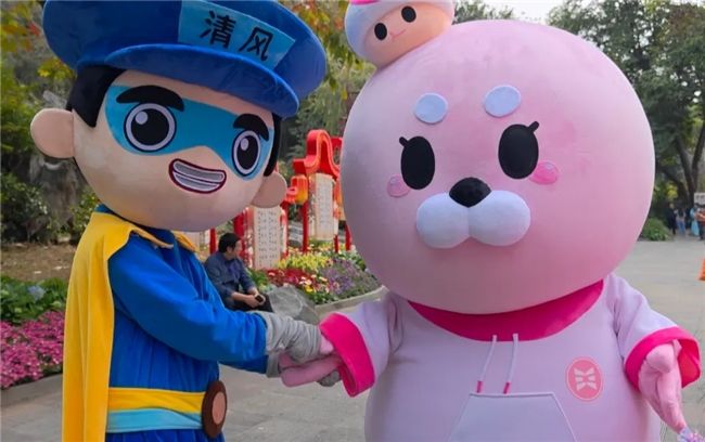 活動(dòng)現(xiàn)場(chǎng),造型圓潤(rùn)、笑容親切的“小益”與“小夢(mèng)”成為了孩子們熱門打卡點(diǎn)。眾多家庭駐足互動(dòng),合影留念,現(xiàn)場(chǎng)洋溢著歡樂(lè)溫馨的節(jié)日氣氛。值得關(guān)注的是,它們與當(dāng)下頗具熱度的本土文化符號(hào)“大灣雞”的同框互動(dòng),構(gòu)成了趣味盎然的畫面,是大灣區(qū)文化IP生態(tài)多元融合、活力共生的一個(gè)生動(dòng)切面。