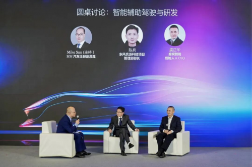 第二場(chǎng)圓桌的主題是“智能輔助駕駛與研發(fā)”,由Mike Sun Motors HK Limited 全球副總裁孫大森主持,東風(fēng)奕派科技項(xiàng)目管理部部長(zhǎng)陳兵、魔視智能創(chuàng)始人&CEO虞正華參與討論。