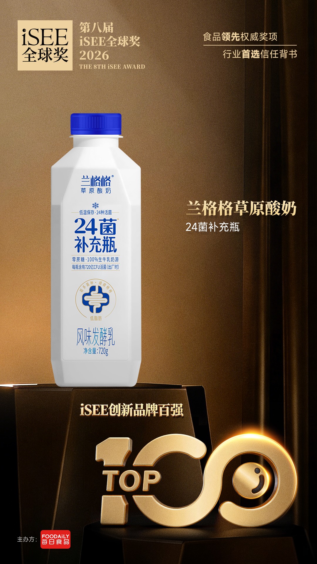 作為緣起中國(guó)、輻射全球的食品領(lǐng)先權(quán)威獎(jiǎng)項(xiàng),iSEE全球獎(jiǎng)始終以“國(guó)際標(biāo)準(zhǔn) + 獨(dú)立權(quán)威評(píng)審 + 非商業(yè)化”為原則,本屆百?gòu)?qiáng)評(píng)選歷經(jīng)3 個(gè)月層層篩選,聚焦“以人為本”的創(chuàng)新方向,蘭格格24菌補(bǔ)充瓶的入選,既是對(duì)產(chǎn)品硬核實(shí)力的高度肯定,更是對(duì)中國(guó)本土酸奶品牌創(chuàng)新能力的認(rèn)可。