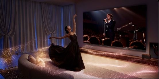 很多超薄電視為了美觀犧牲了音質(zhì),聲音聽起來像“敲鐵皮”。但海信E8S在44mm的纖薄機(jī)身里,塞進(jìn)了帝瓦雷聲學(xué)系統(tǒng)。4.2.2的多聲道設(shè)計(jì),特別是那個(gè)像“勝利戰(zhàn)鼓”一樣的低音炮設(shè)計(jì),看大片時(shí)的爆炸聲、春晚現(xiàn)場的掌聲,那是真的能從屏幕里“沖”出來包圍你的。