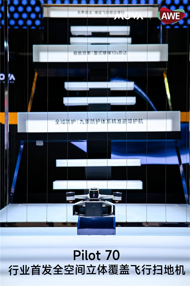 MOVA Pilot 70創(chuàng)新融合飛行模組,打造出全球首款無(wú)界飛行掃地機(jī),將清潔維度從平面二維拓展至三維全域,實(shí)現(xiàn)對(duì)復(fù)式玻璃頂?shù)雀呖諈^(qū)域的自動(dòng)化覆蓋。