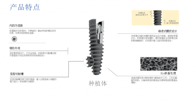 技術(shù)特征:采用內(nèi)四方連接+梯形螺紋設(shè)計(jì),植入更穩(wěn),咬合更牢,防止微動(dòng),體驗(yàn)更加舒適。