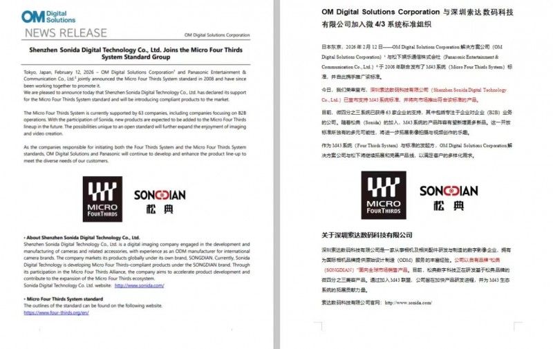 2026 年加入 M43 系統(tǒng)聯(lián)盟,是松典開拓全球版圖的關(guān)鍵一步。這意味著品牌直接融入這一成熟的全球影像生態(tài),無需從零構(gòu)建封閉系統(tǒng),可依托聯(lián)盟開放標(biāo)準(zhǔn),參與生態(tài)共建,進(jìn)一步優(yōu)化自身產(chǎn)品體系,提升產(chǎn)品兼容性與專業(yè)度,這比閉門造車更高效、更可信。