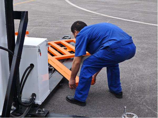 該設備融合全電動托盤搬運、液壓同步升降、智能電氣控制與高強度結構設計等先進技術,升降高度可在2米至7.2米之間精準調節(jié),輪胎力臂支架適配90毫米至210毫米的擋泥板高度,覆蓋主流貨車車型。設備機動性強,顯著降低對固定卸車點位及人力資源的依賴,優(yōu)化物流調度流程。整套設備拆裝僅需2人、15分鐘內即可完成,無需專用工具,大幅提升了作業(yè)準備效率。