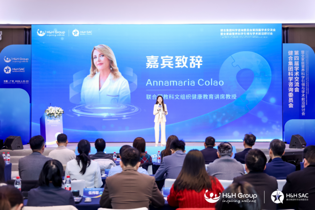 H&H SAC作為健合集團(tuán)旗下科研學(xué)術(shù)創(chuàng)新平臺(tái),在本次大會(huì)中充分展現(xiàn)了強(qiáng)大的國內(nèi)外高校、科研院所、協(xié)會(huì)及國際權(quán)威資源優(yōu)勢。聯(lián)合國教科文組織健康教育講席教授Annamaria Colao通過視頻表達(dá)了對(duì)于與H&H SAC成功合作的喜悅。她表示,過去與H&H SAC共同推進(jìn)了近十項(xiàng)深入的科學(xué)倡議,并將研究成果成功轉(zhuǎn)化為實(shí)際應(yīng)用,未來雙方將繼續(xù)合作,攜手建立精準(zhǔn)營養(yǎng)的代際標(biāo)準(zhǔn),為全家庭健康注入科學(xué)動(dòng)能。