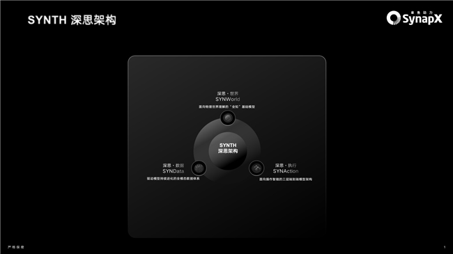 SYNTH深思架構(gòu)并非單點技術(shù)堆疊,而是一套圍繞操作智能、物理世界建模與數(shù)據(jù)體系協(xié)同演化的系統(tǒng)架構(gòu),核心包含三大模塊:
