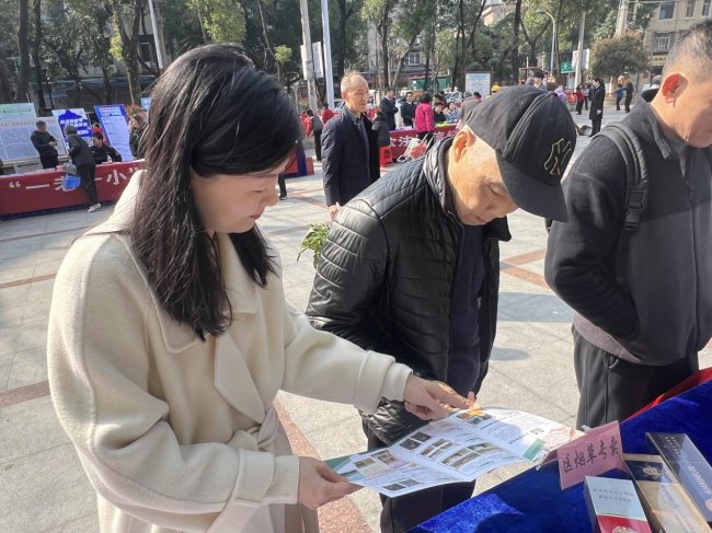 圖為宣傳員在活動展臺宣講