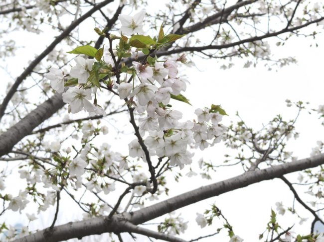 不同于龜山粉櫻的熱烈,西北湖的白櫻更顯清雅。抬眼望去,滿樹繁花如云似雪,素凈的花瓣在陰天里泛著溫潤的光,與身后的玻璃幕墻高樓形成奇妙的碰撞。古老的櫻花與現(xiàn)代的都市,自然的詩意與城市的煙火,在這一刻完美交融。女兒牽著我的手,在花樹下蹦跳著追逐飄落的花瓣,細碎的白瓣落在她的發(fā)梢,像撒了一把星光;父母則慢慢踱著步,對著滿樹繁花輕聲贊嘆,眼里滿是對春日的眷戀。