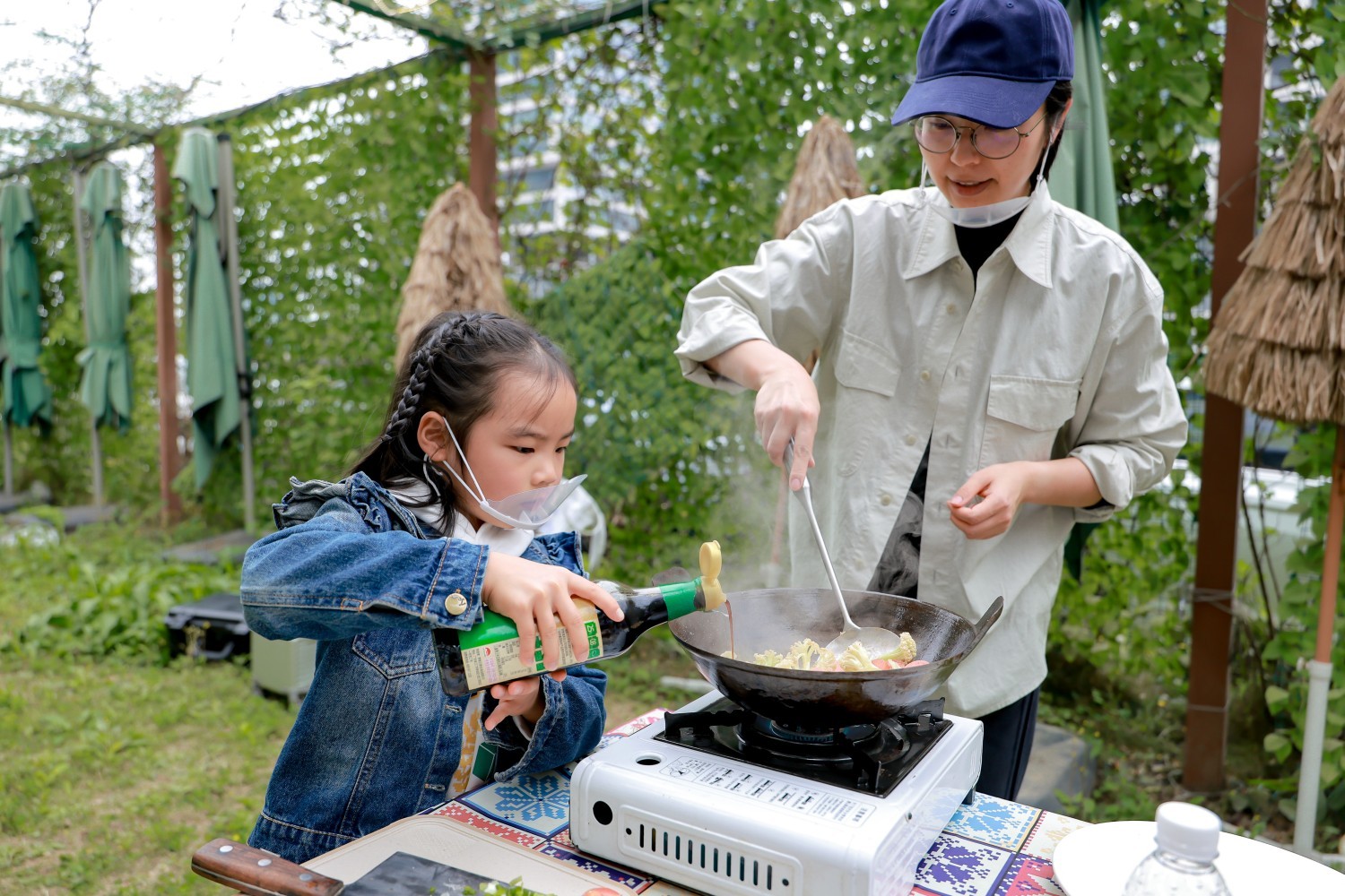 不僅如此,在烹飪過(guò)程中產(chǎn)生的“廚余垃圾”,也能通過(guò)一些環(huán)保小巧思變廢為寶?!跋裎覀兿飨聛?lái)的土豆皮、胡蘿卜皮,加上廢棄的白糖,適量的水,搖均勻后靜待成為環(huán)保酵素?!痹趨f(xié)助孩子們烹飪的李錦記希望廚師沙貴發(fā)解釋,環(huán)保酵素日后也可以成為清潔液、植物的營(yíng)養(yǎng)液,形成循環(huán)可持續(xù)。