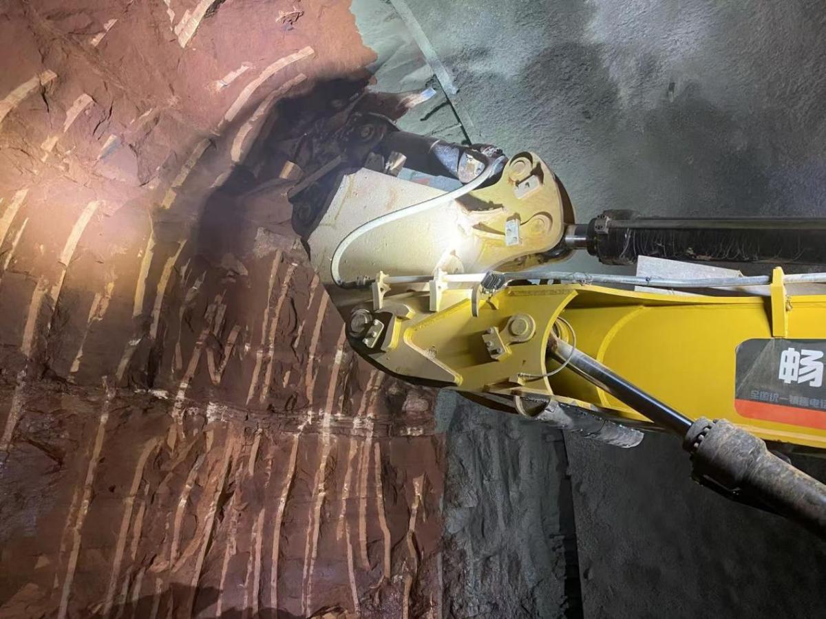 甘肅酒泉某隧道項目中,地質(zhì)構(gòu)造復雜,五級圍巖占比極高,還存在軟巖大變形、涌水等施工風險,傳統(tǒng)破碎錘作業(yè)效率低、故障頻發(fā),嚴重影響工期。項目方經(jīng)多方考察對比,率先采購 1 臺三一 SY485 搭配暢安穿山甲隧道鉤機臂投入施工,使用體驗遠超預期,兩個月后便再次訂購 1 臺,持續(xù)擴大施工投入。