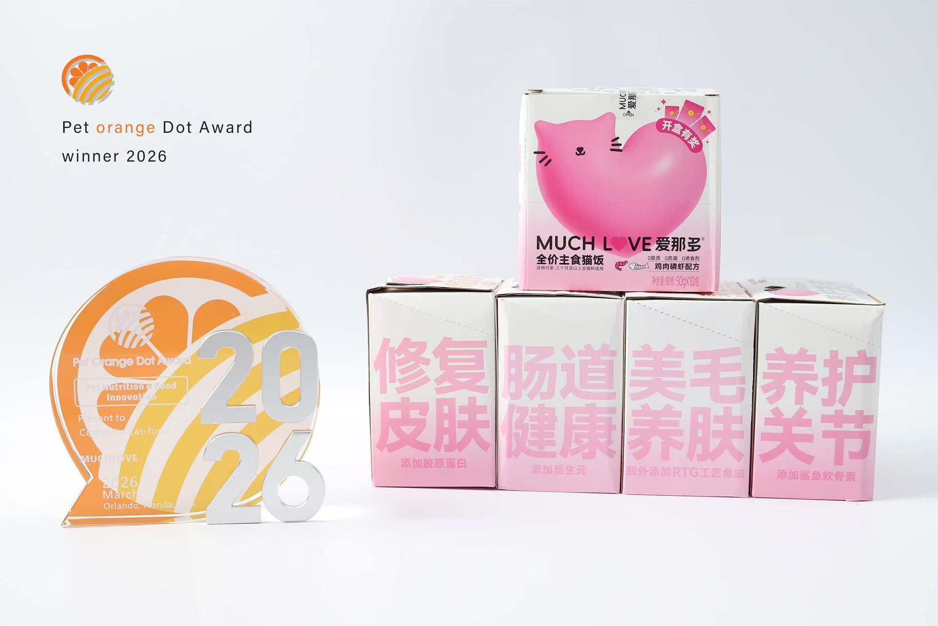2026年3月26日,在美國佛羅里達(dá)州奧蘭多市舉行的國際寵物行業(yè)盛會(huì)上,中國寵物食品品牌「MUCHLOVE愛那多」憑借其「全價(jià)主食貓飯」系列產(chǎn)品,榮獲2026年度Pet Orange Dot Award(寵物橙點(diǎn)獎(jiǎng))“寵物營養(yǎng)與食品創(chuàng)新”類別大獎(jiǎng)。愛那多也因此成為首批獲此國際權(quán)威獎(jiǎng)項(xiàng)的中國寵物食品品牌之一,標(biāo)志著中國寵物食品在全球舞臺(tái)上的創(chuàng)新實(shí)力獲得高度認(rèn)可。