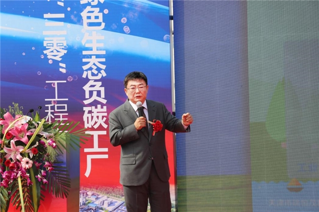 奠基儀式前,天津市環(huán)境治理業(yè)商會會長、瑞恒茂集團董事長林洪新發(fā)表致辭,詳細勾勒出竹醇綠色零碳循環(huán)經(jīng)濟示范項目的未來發(fā)展藍圖。他表示,本次開工的生物質(zhì)綠色甲醇項目,承載著推動零碳園區(qū)建設、服務國家“雙碳”目標的重要使命,是瑞恒茂集團產(chǎn)業(yè)升級的關鍵一步。他介紹,瑞恒茂集團已構(gòu)建起清晰的產(chǎn)業(yè)發(fā)展路徑:產(chǎn)業(yè)1.0階段,形成了“水、泥、肥”資源化最低成本獲取生物質(zhì)原料的路徑,該路徑已納入京津冀環(huán)境綜合治理國家科技重大專項,今年將在部分地區(qū)全面推進;產(chǎn)業(yè)2.0階段,完成從生物質(zhì)顆粒燃料向綠色甲醇燃料的轉(zhuǎn)型,成功邁入“十五五”重點發(fā)展的未來能源領域;產(chǎn)業(yè)3.0階段,將重點打造竹纖醇一體化模式,進一步提升產(chǎn)品附加值和企業(yè)創(chuàng)效能力。談及企業(yè)使命,他指出,瑞恒茂始終堅守“將有機固廢資源化,改良鹽堿地種植多倍體蘆竹‘綠州一號’,生產(chǎn)生物質(zhì)能源和新材料,替代化石能源,助力實現(xiàn)‘無廢城市’、‘綠水青山’、‘雙碳目標’的核心使命,將通過‘產(chǎn)品產(chǎn)業(yè)化、產(chǎn)業(yè)生態(tài)化、生態(tài)閉環(huán)化、閉環(huán)智能化’的實施路徑,穩(wěn)步實施十年規(guī)劃。到2035年,集團將完成2000萬畝鹽堿地改良,實現(xiàn)年處置有機固廢5000萬噸、生產(chǎn)有機肥2000萬噸,年產(chǎn)蘆竹原料8000萬至1億噸,支撐生產(chǎn)漿粕和綠色甲醇3000萬噸,達成年減碳3億噸的目標。”