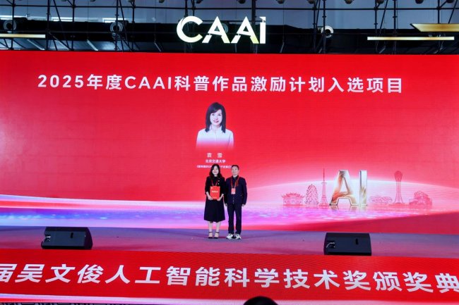 中國人工智能學(xué)會副監(jiān)事長、清華大學(xué)教授馬少平頒發(fā)“2025年度CAAI科普作品激勵計(jì)劃”入選項(xiàng)目榮譽(yù)證書