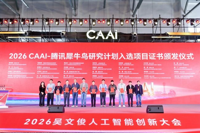 戴瓊海理事長、騰訊公司技術(shù)委員會主任王巨宏頒發(fā)“2026 CAAI-騰訊犀牛鳥研究計(jì)劃”入選項(xiàng)目證書