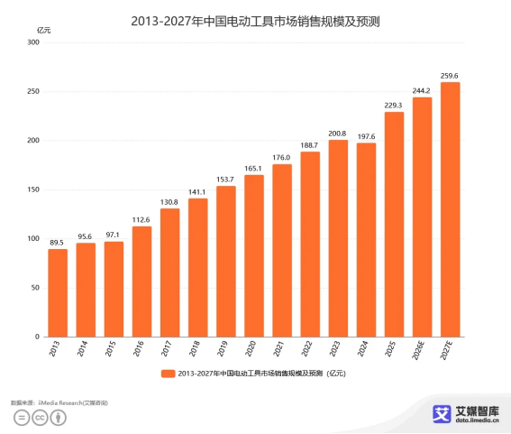 隨著制造業(yè)升級與家裝DIY 需求增長,電動工具正從專業(yè)領(lǐng)域向大眾消費市場滲透,中國市場步入穩(wěn)健增長快車道。iiMedia Research(艾媒咨詢)發(fā)布的《中國電動工具行業(yè)發(fā)展狀況與用戶行為洞察數(shù)據(jù)》顯示,2025年中國電動工具市場銷售規(guī)模為229.3億元,預(yù)計到2027年有望突破259.6億元?;〝U容、工業(yè)自動化、智能制造的全面推進,更讓園林工具細分賽道迎來爆發(fā)窗口期,一批深耕技術(shù)、堅守品質(zhì)的品牌順勢崛起。