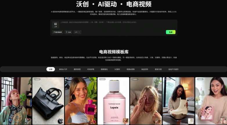 在這樣的行業(yè)背景下,沃創(chuàng)(wocreate.ai)作為一款垂直領(lǐng)域AIGC視頻創(chuàng)作工具,正以其深厚的行業(yè)洞察和硬核的AI技術(shù),重構(gòu)電商與社媒內(nèi)容的生產(chǎn)引擎。它不僅僅是一個AI生成工具,更是商家在存量競爭時代實(shí)現(xiàn)降本增效、重塑生產(chǎn)力的“秘密武器”。