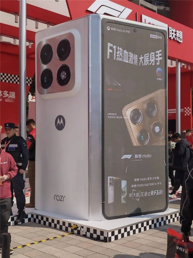 在本次F1中國(guó)大獎(jiǎng)賽的賽道之外,驍龍的身影同樣清晰可見。作為F1全球智能手機(jī)合作伙伴,聯(lián)想moto在現(xiàn)場(chǎng)搭建了一座醒目的紅色展區(qū),成為車迷們打卡的熱門地標(biāo)。展區(qū)的主角,是剛剛在2026年世界移動(dòng)通信大會(huì)(MWC)上全球亮相、如今首次在國(guó)內(nèi)公開展出的moto razr fold折疊屏手機(jī)。