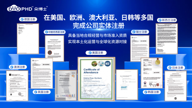 在產(chǎn)品研發(fā)端,朵博士依托澳洲GMP研發(fā)實(shí)驗(yàn)室、美國GMP研發(fā)實(shí)驗(yàn)室、韓國Aonuhaci & Cosmax自然健康聯(lián)合實(shí)驗(yàn)室三大國際研發(fā)平臺(tái),構(gòu)建了全球化研發(fā)網(wǎng)絡(luò)。在原料供應(yīng)端,品牌與全球35家優(yōu)質(zhì)原料供應(yīng)商建立合作關(guān)系,在全球布局合作14家工廠,確保產(chǎn)品從源頭到終端的品質(zhì)可控。在標(biāo)準(zhǔn)認(rèn)證層面,朵博士已獲得美國FDA、GMP、NSF認(rèn)證,澳大利亞GMP、TGA、HACCP認(rèn)證,韓國GMP、HACCP、ORGANIC認(rèn)證,以及中國國家認(rèn)證認(rèn)可監(jiān)督管理局認(rèn)證(CNCA) 等多重國際認(rèn)證,符合多國GMP規(guī)范。
