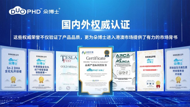 在國際獎(jiǎng)項(xiàng)層面,朵博士同樣表現(xiàn)亮眼:藍(lán)莓葉黃素酯含化丸斬獲第38屆國際創(chuàng)新、知識(shí)和創(chuàng)造力節(jié)TESLA FEST金獎(jiǎng);蝦青素產(chǎn)品榮獲蒙特獎(jiǎng)金獎(jiǎng);接骨木莓復(fù)合飲在國際大會(huì)上斬獲“金獎(jiǎng)”。這些國際權(quán)威榮譽(yù)不僅驗(yàn)證了產(chǎn)品品質(zhì),更為品牌進(jìn)入港澳市場提供了有力的市場背書。