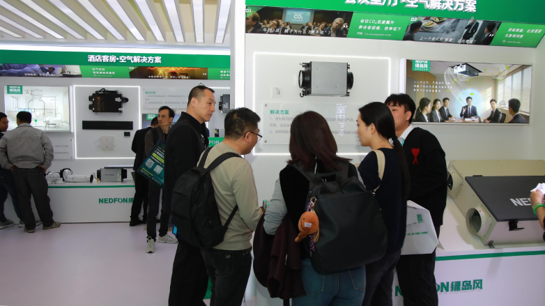 綠島風(fēng)各個(gè)場(chǎng)景展區(qū)吸引大量參觀者駐足。吊頂式熱回收新風(fēng)機(jī)作為明星產(chǎn)品之一,可高效匹配酒店大堂、會(huì)議廳及客房等場(chǎng)景的通風(fēng)換氣與能源利用需求,在實(shí)現(xiàn)空氣多重過濾和平衡送風(fēng)的同時(shí),提升整體能源利用效率,實(shí)現(xiàn)節(jié)能性與實(shí)用性的雙重保障。