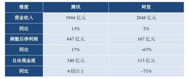 表:騰訊和阿里最新財報核心數(shù)據(jù)