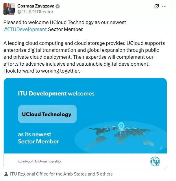 ITU-D局長(zhǎng)CosmasZavazava發(fā)文歡迎優(yōu)刻得加入