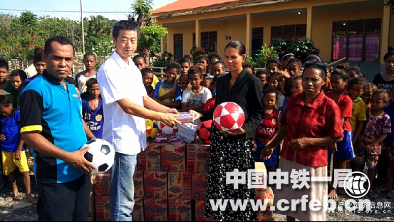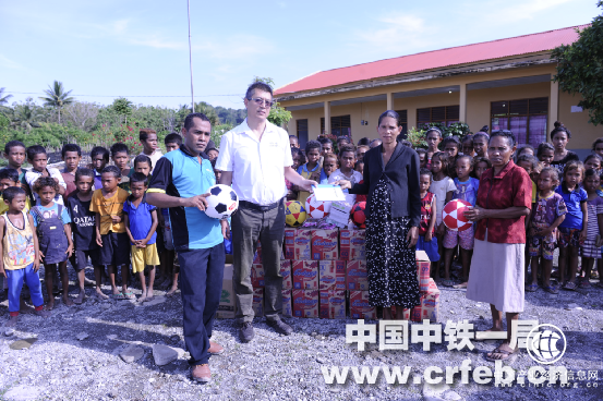 一局東帝汶項目給當?shù)貙W校捐贈物品。