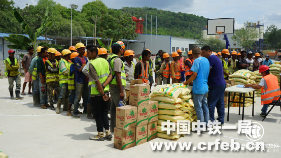 2016年圣誕節(jié)期間,中鐵一局東帝汶項目給當?shù)赝饧畣T工分發(fā)物品。