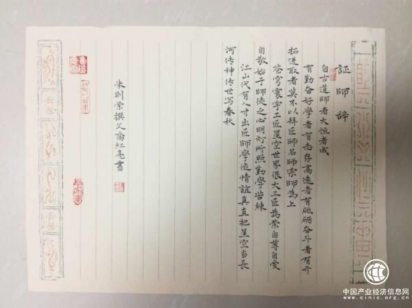 由朱則榮先生撰文,喬紅亮老師書寫的《證師辭》、《拜師辭》、《師訓(xùn)辭》。