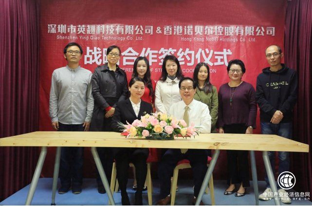 香港諾貝爾控股有限公司徐女士、英翹科技的創(chuàng)始人葉民俊先生簽約合影