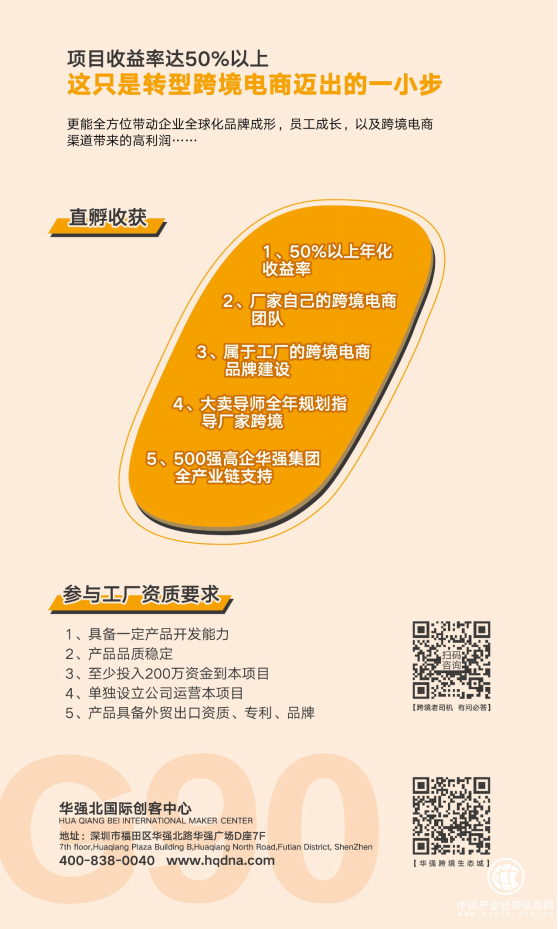華強G90“工廠直孵”,創(chuàng)造了一個傳統(tǒng)工廠轉型升級的標準化、可操作、可落地的模式。為處于轉型焦慮,亟需尋求新的增長點的中國傳統(tǒng)行業(yè),開辟了一條全新的道路。華強G90致力于幫助傳統(tǒng)企業(yè)擺脫發(fā)展困境,打通全新出海渠道。為中國制造業(yè)的下一個春天共同奮斗!