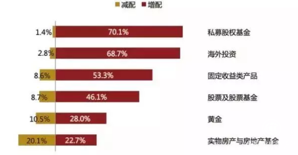 在未來(lái)的資產(chǎn)配置計(jì)劃上,高凈值人士最青睞私募股權(quán)資產(chǎn)和海外資產(chǎn),對(duì)股票類(lèi)資產(chǎn)和固定收益類(lèi)資產(chǎn)的需求在上升,對(duì)房地產(chǎn)類(lèi)資產(chǎn)的態(tài)度從悲觀(guān)到中性??傮w來(lái)說(shuō),普遍在增持金融資產(chǎn),并向著兼顧跨區(qū)域、跨幣種、跨周期和跨類(lèi)別的均衡資產(chǎn)配置方向發(fā)展。