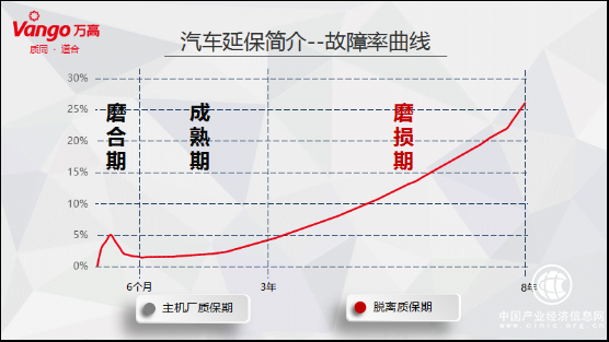 劉德春表示,從汽車故障率曲線圖,可以看出汽車從新車上路到8年的整個故障率,新車從出廠的6個月內(nèi)車輛由于處于磨合期,故障率略有上升,經(jīng)過磨合期之后的車輛整體狀況比較穩(wěn)定,在此3年之后故障率隨著車齡的增加呈現(xiàn)明顯上升趨勢。