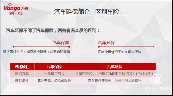 至于汽車延保跟車險的區(qū)別,劉德春說,可以從保障內(nèi)容來看,即車險是對車輛非正常條件下(如交通事故等)對車輛的保障,可看作是汽車的意外險;而延保是車輛在正常使用情況下對車輛的保障,可看作是汽車的健康險。