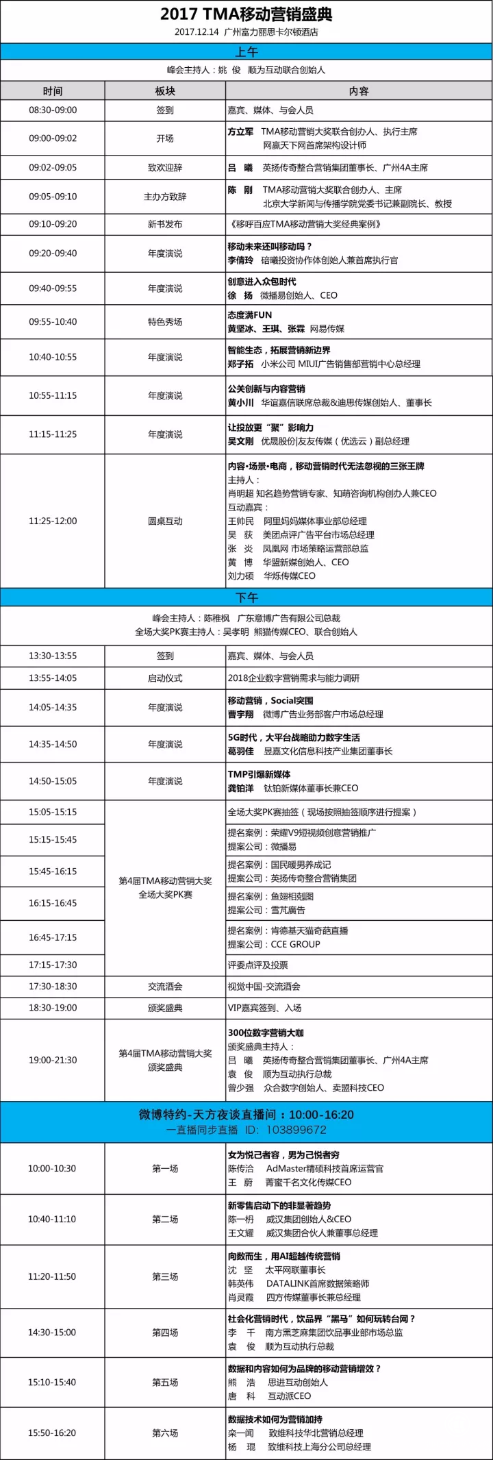 2017 TMA移動營銷盛典將有行業(yè)領(lǐng)先的移動互聯(lián)網(wǎng)平臺、卓越的移動營銷代理公司/技術(shù)公司、積極探索移動營銷應(yīng)用的品牌廣告主、全球移動互聯(lián)網(wǎng)營銷精英匯聚一堂,共同探討備受矚目的移動營銷發(fā)展趨勢,解讀激動人心的移動營銷技術(shù)與方法,分享年度最值得剖析和借鑒的優(yōu)秀移動營銷案例;更有年度演說、特色秀場、全場大獎PK賽、視覺中國-交流酒會、品牌互動展、微博特約-天方夜談直播間、頒獎盛典七大至尊版塊,將點亮“向移而升”新思維。