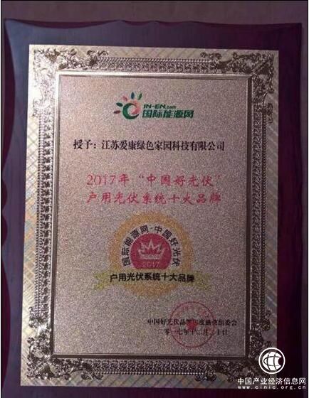 愛(ài)康綠色家園憑借在戶(hù)用分布式領(lǐng)域的不斷探索和貢獻(xiàn),愛(ài)康綠色家園榮膺2017年“中國(guó)好光伏”戶(hù)用光伏系統(tǒng)十大品牌,將成為愛(ài)康綠色家園發(fā)展過(guò)程中的又一個(gè)重要里程碑,愛(ài)康綠色家園必將繼續(xù)堅(jiān)持走品牌化、專(zhuān)業(yè)化的道路,在戶(hù)用分布式光伏領(lǐng)域持續(xù)發(fā)力,以用戶(hù)體驗(yàn)為中心,追求極致和精益求精的“匠心精神”,努力提升品牌價(jià)值和影響力,把清潔能源帶進(jìn)千家萬(wàn)戶(hù),不斷驅(qū)動(dòng)創(chuàng)新開(kāi)啟新征途。