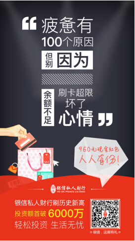 據(jù)了解,為了再次感謝投資者們的投資熱情,銀信私人財(cái)行在年底將加大優(yōu)惠活動(dòng)的力度,特推出的‘960元新手注冊(cè)紅包’、‘禮溢金秋 一路有禮——爆款手機(jī)大派送’等福利活動(dòng),深受投資者的歡迎??梢?jiàn),一家以客戶利益為主的網(wǎng)貸平臺(tái),才是真正的用‘心’在服務(wù)!