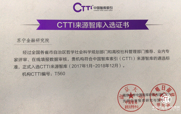 據(jù)了解,CTTI由南京大學(xué)中國智庫研究與評價中心、光明日報智庫研究與發(fā)布中心聯(lián)合研發(fā),其來源智庫經(jīng)過四大環(huán)節(jié)的嚴(yán)格審核——全國智庫機(jī)構(gòu)摸底調(diào)查、委托有關(guān)機(jī)構(gòu)推薦來源智庫、業(yè)內(nèi)專家評審、數(shù)據(jù)審核,全部通過后才能進(jìn)入智庫名單。而本次公布的增補(bǔ)智庫名單中,企業(yè)智庫5家,蘇寧金融研究院和騰訊研究院旗下的騰云智庫名列其中。