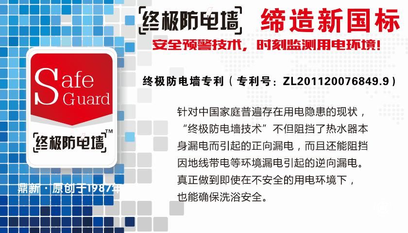電熱水器“吃人”的新聞隔三差五被媒體曝光,明明熱水器裝有漏電保護(hù),事故卻頻發(fā)。其實(shí)僅僅能阻擋自身漏電的熱水器依舊存在安全隱患,鼎新電熱水器加載了自主專利的“終極防電墻”,在確保沐浴安全的同時(shí),時(shí)刻檢測(cè)家中的用電環(huán)境,阻擋環(huán)境漏電引發(fā)的水帶電,不再讓悲劇發(fā)生。