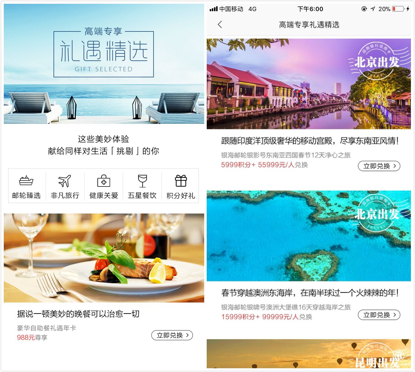 招商銀行信用卡想用戶所想,重磅推出高端增值服務(wù)電商平臺“禮遇精選”,力求通過臻選符合高端生活形態(tài)的產(chǎn)品及服務(wù)為高端客戶打造優(yōu)質(zhì)生活,如聯(lián)合知名品牌為高端持卡人奉上郵輪甄選、非凡旅行、健康關(guān)愛、五星餐飲等專屬品質(zhì)生活產(chǎn)品;升級“領(lǐng)先積分計劃”,讓高端客戶享受“小積分大樂趣”的積分兌換體驗。