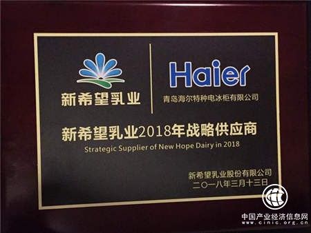 海爾商用冷柜獲新希望乳業(yè)戰(zhàn)略供應商授牌